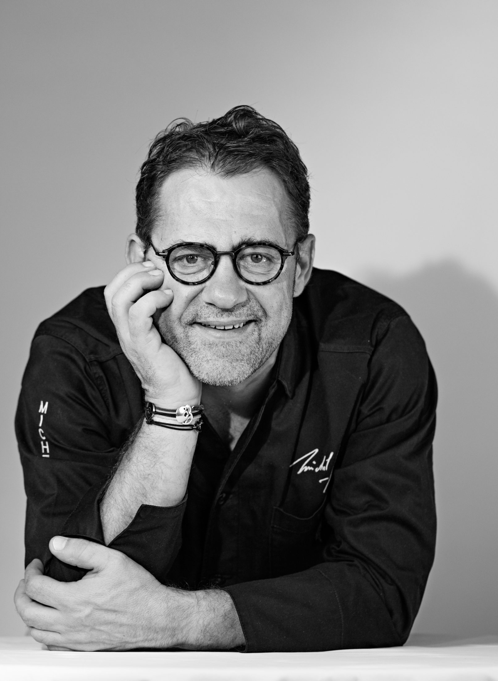 Outils graphiques : Le portrait de Michel Sarran (photographie) / Sa signature