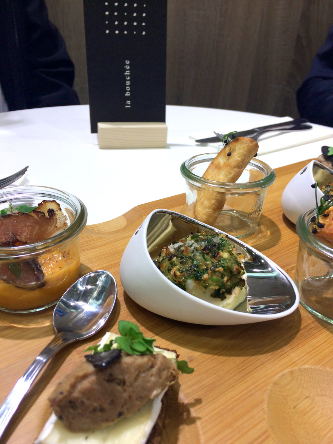 L’idée générale est de proposer un ensemble de plats sous forme de bouchées afin d’appuyer sur la diversité des origines du Groupe présent dans 49 pays, et de dévoiler une cuisine davantage orientée sur la qualité plutôt que sur la quantité, du peu mais de l’exceptionnel :
