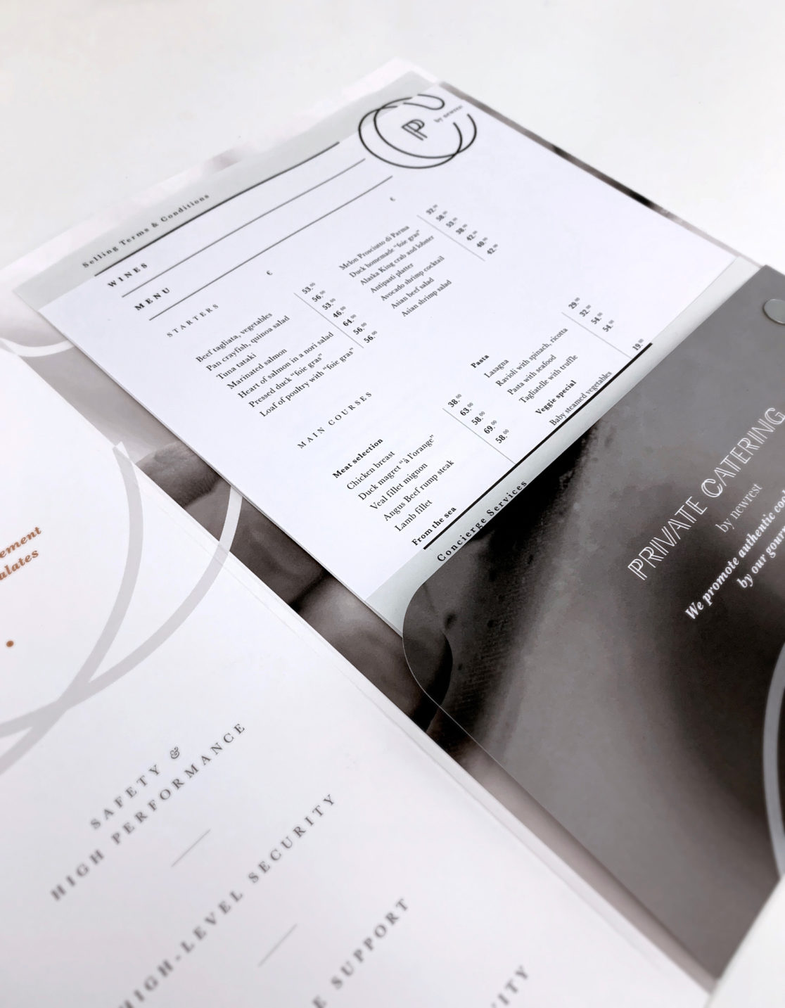 Lier l’identité visuelle de la marque Private Catering avec celle de la marque Newrest, en concevoir la variante haut de gamme.
